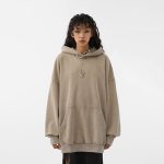 American high street heavy water washing solid color embroidery hooded sweater female