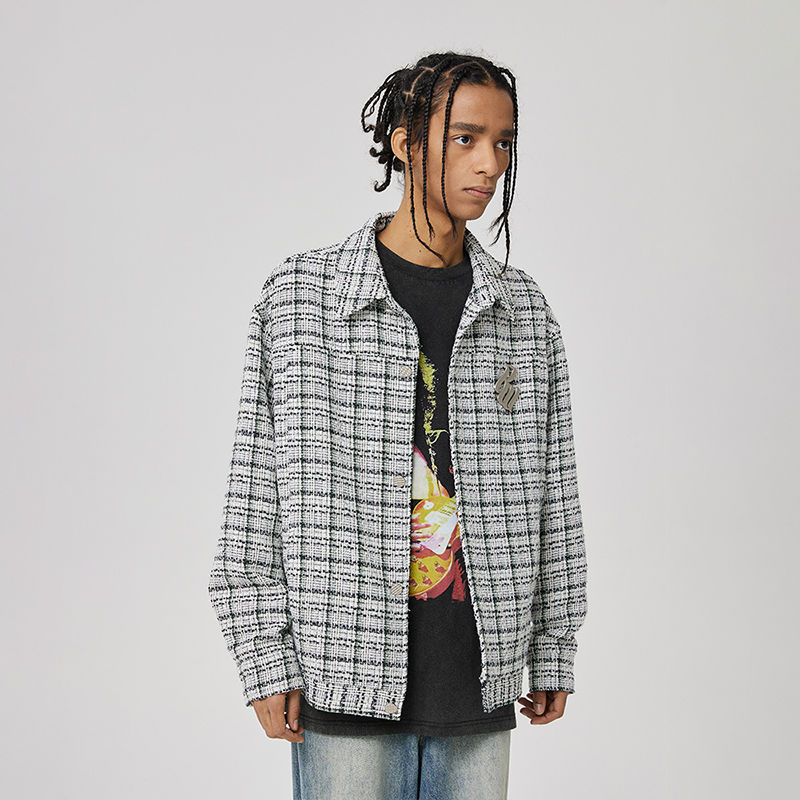 Spring and autumn new American high -street Xiaoxiang wave brand heavy grid grid weaving splicing jacket loose tide