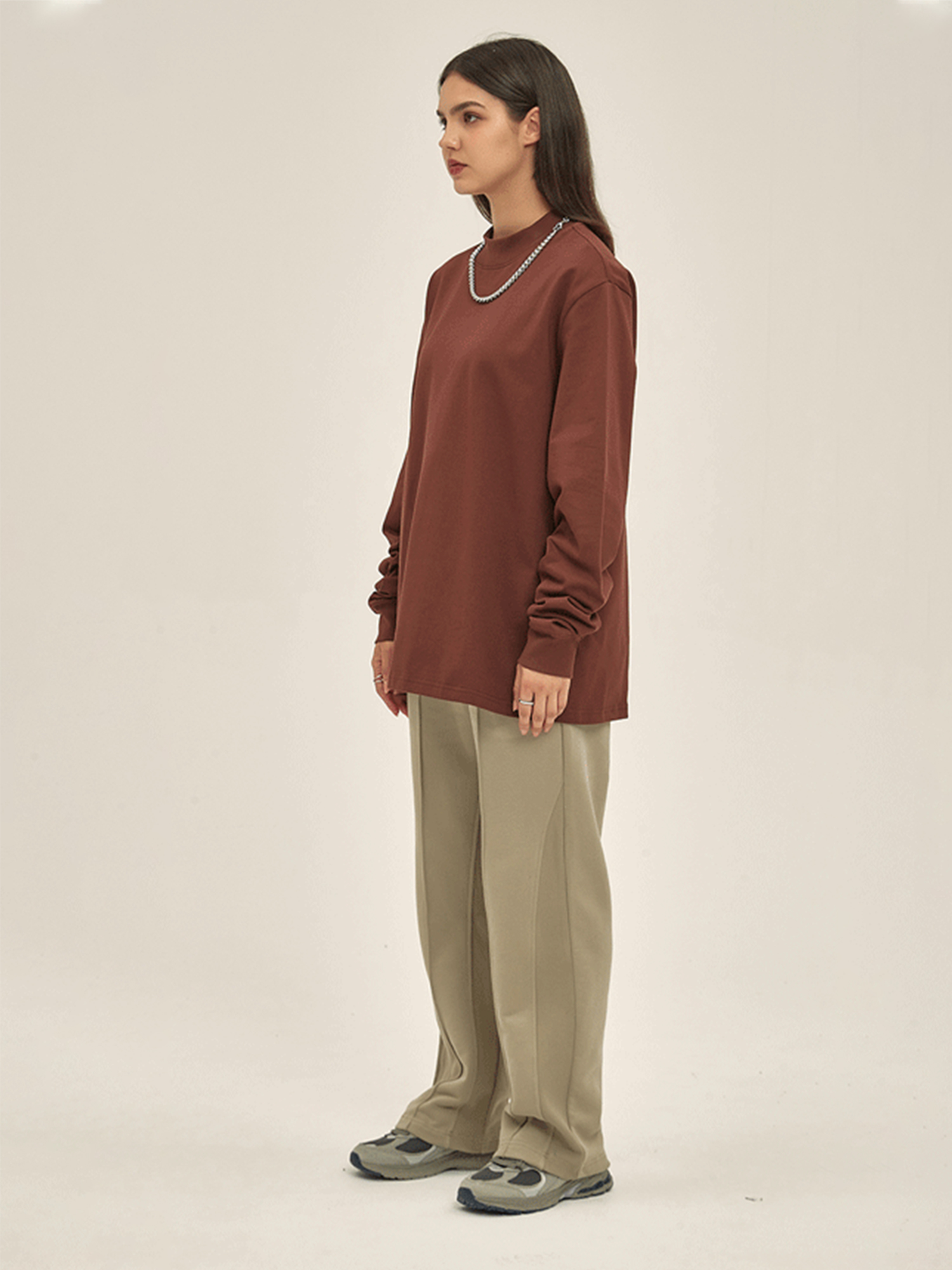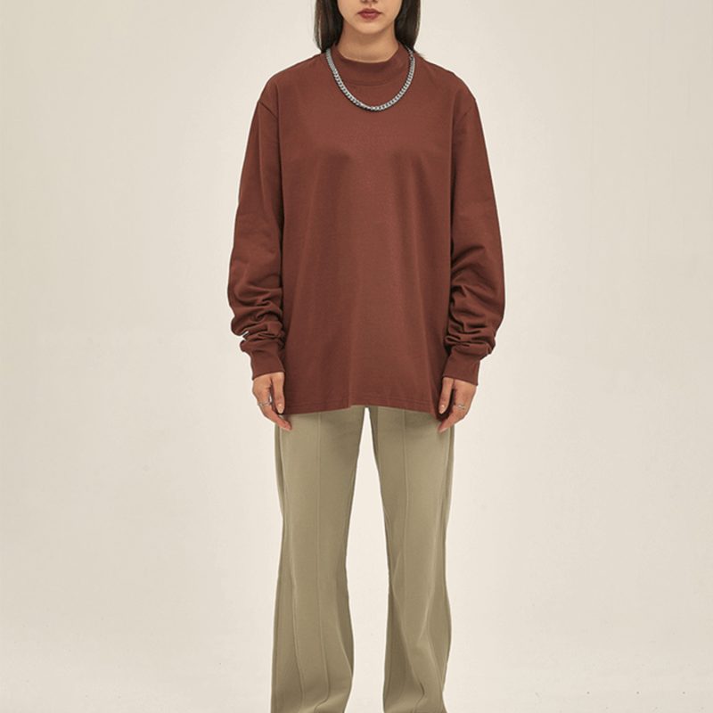 Autumn and winter new products heavy weight 345g double gauze flat line high neck loose long -sleeved T -shirt women