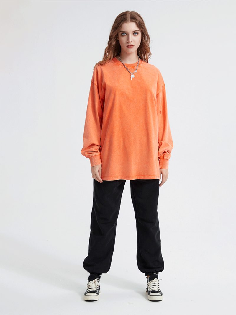 Tide brand new wax dye 250g long -sleeved T -shirt 10 color autumn and winter solid color water washing as old male T -shirt